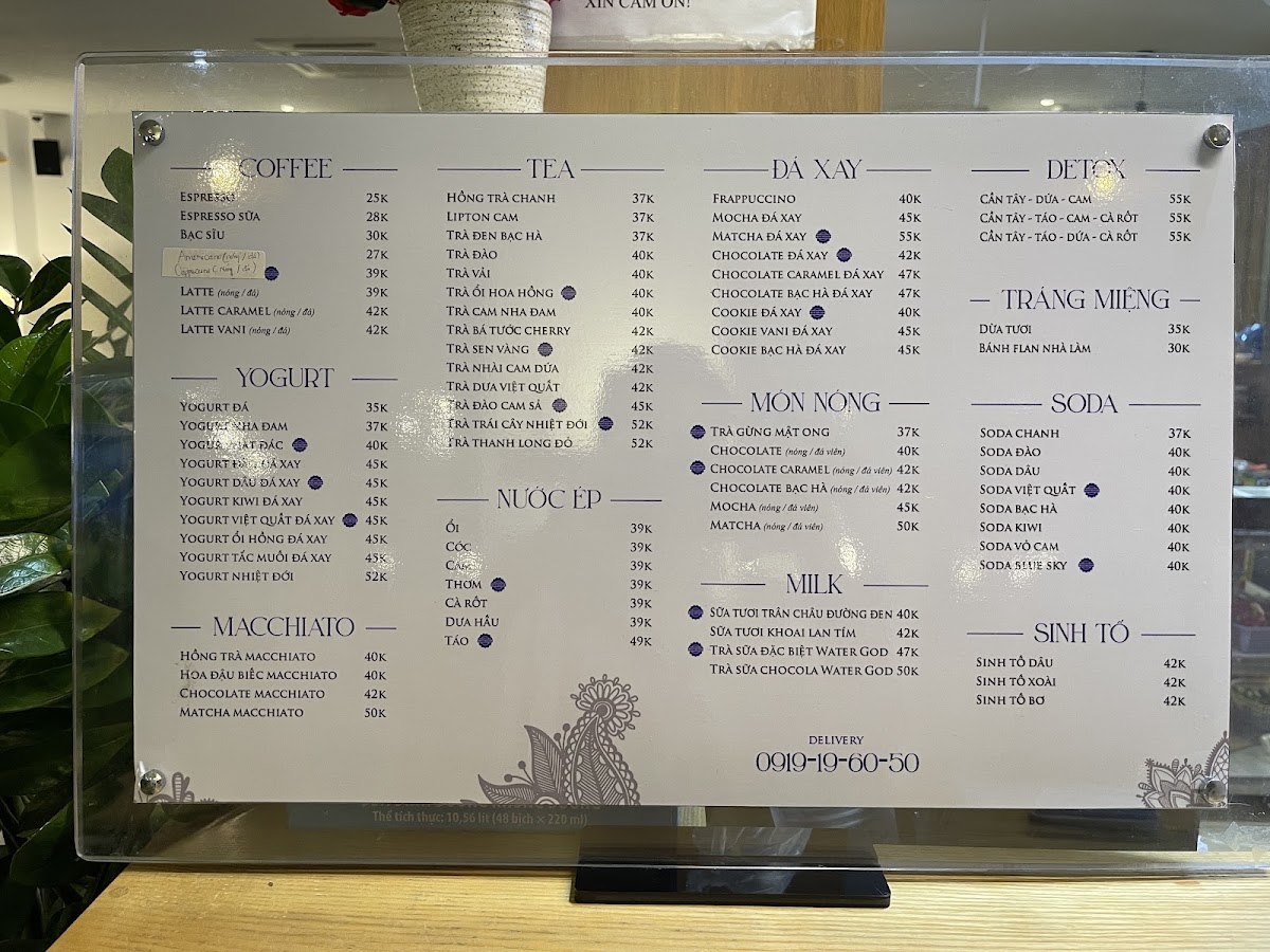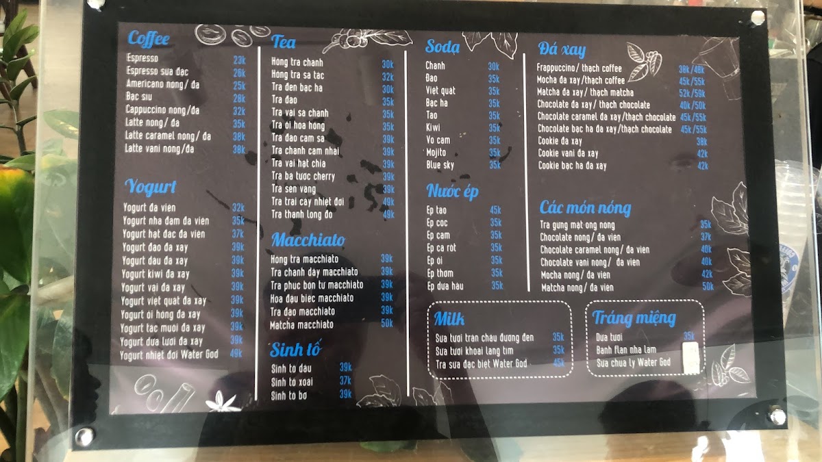 Water God Coffee & Tea Menu